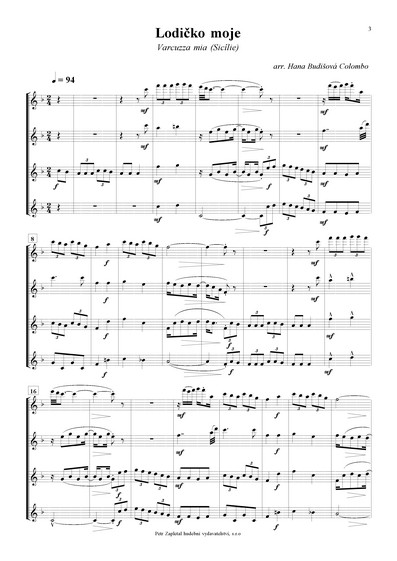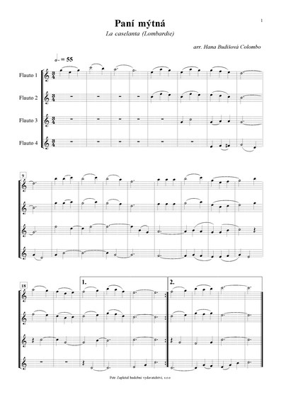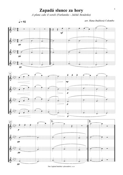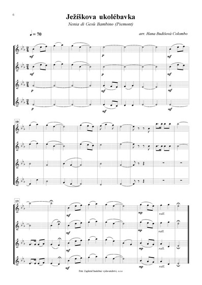 | Paní mýtná /La caselanta/ (Lombardie), Nevěstina píseň /El canto de la sposa/ (Tridentsko - Horní Adiže), Lodičko moje /Varcuzza mia/ (Sicílie), Zapadá slunce za hory /A planc cale il soreli/ (Furlansko - Julské Benátsko), Ježíškova ukolébavka /Nenia di Gesu Bambino/ (Piemont), Když se narodil Ježíšek /Quando nascette Ninno/ (Kampánie), Děvče z Parenza /La mula de Parenzo/ (Furlansko - Julské Benátsko), Manžílek /Il maritino/ (Piemont) |